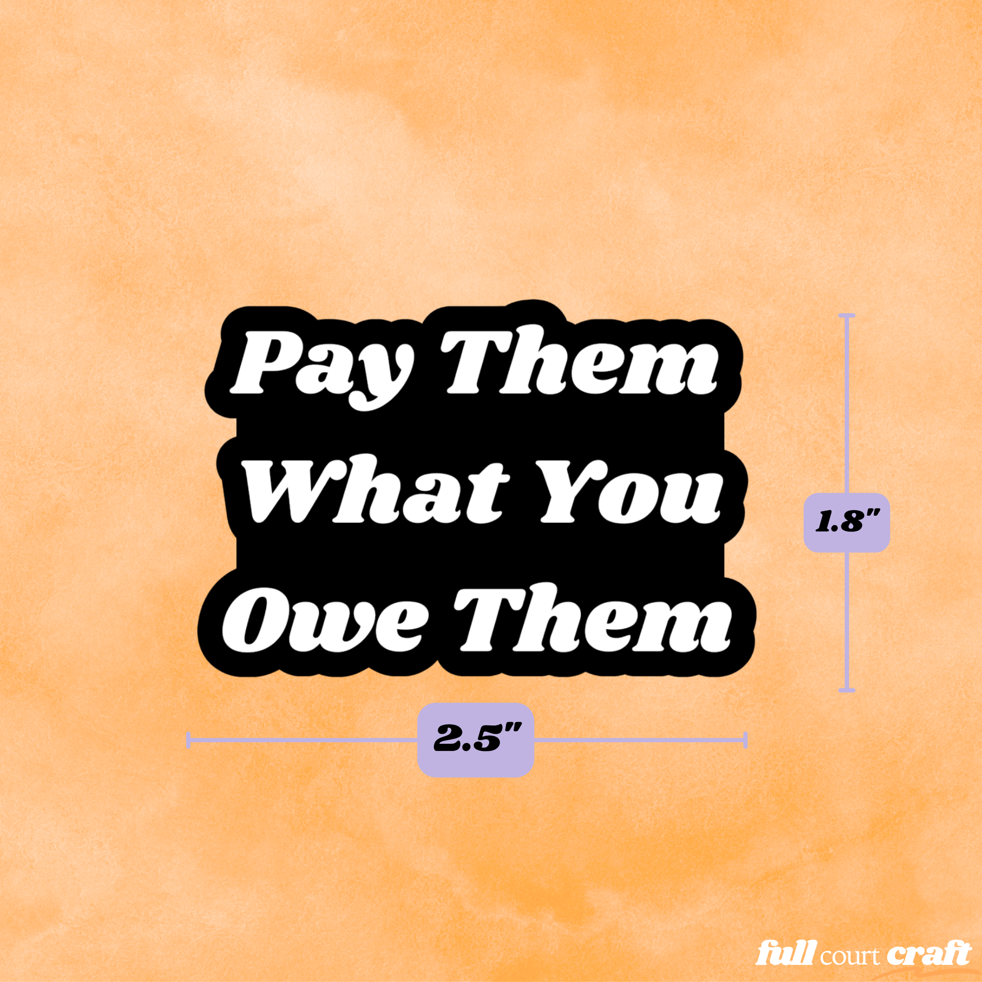 Make your voice heard with the “Pay Them What You Owe Them” matte sticker—a rallying cry for fair pay and revenue sharing in the WNBA. Bold, impactful, and built to last, this sticker is more than just decoration—it’s a statement of support for the athletes who inspire us on and off the court.