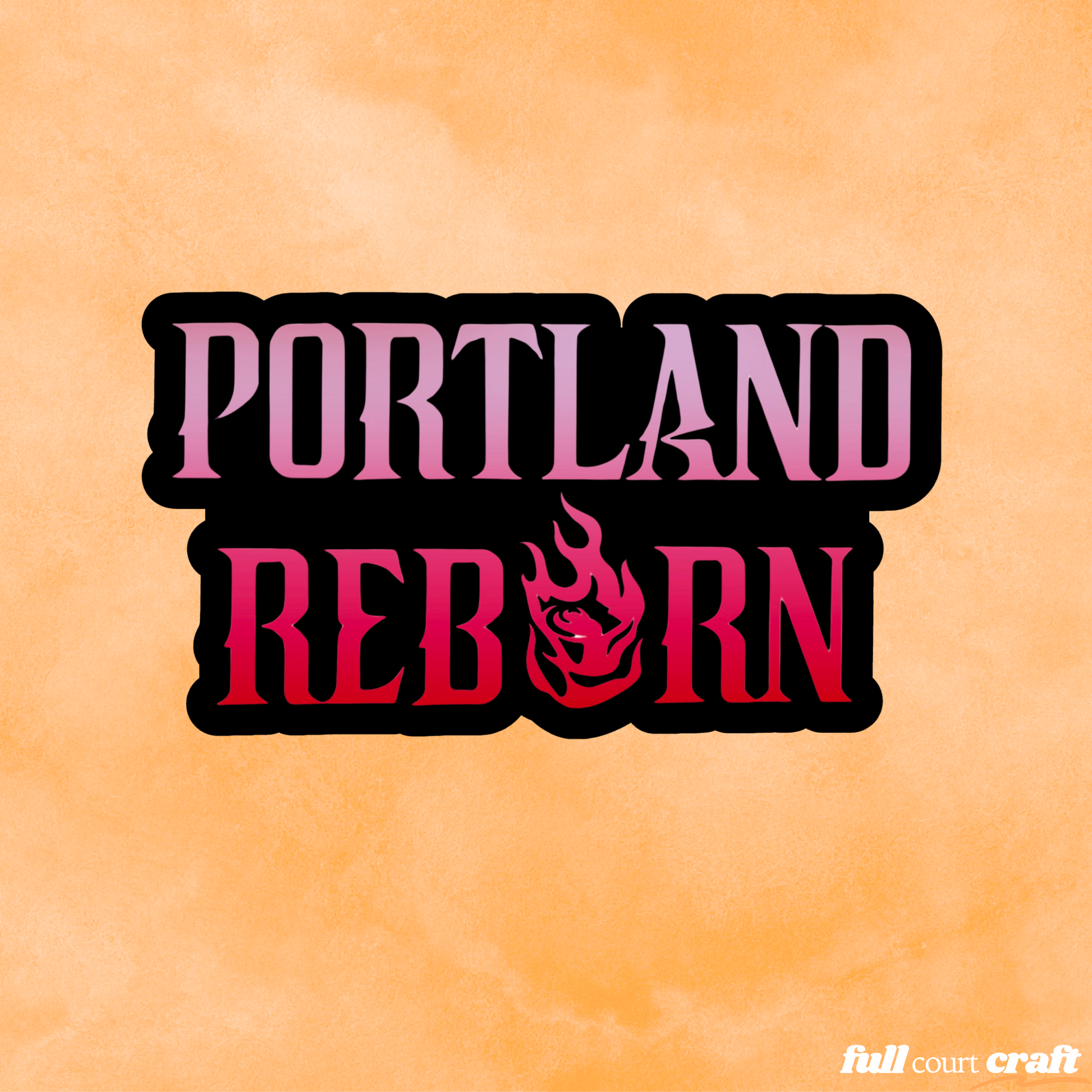 This 3.5" x 2" matte sticker features the phrase “Portland Reborn”, with the Fire emblem igniting the “O” — a powerful nod to the city’s passion reignited. The black background and red gradient lettering make this design feel fierce, fearless, and ready for tipoff — just like Portland’s new squad.